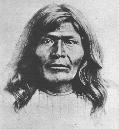 Victorio, Häuptling der Mimbreño-Apache (geb. um 1825; gefallen 1880) Berühmter und kriegerischer Häuptling, der viele Jahre sowohl Mexikaner als auch US-Amerikaner bekämpfte.
