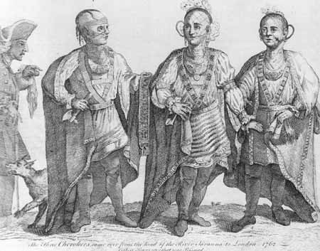 Ostenaco, Häuptling der Cherokee (Lebensdaten unsicher) Einflussreicher Häuptling, der sich im 18. Jahrhundert um enge Beziehungen zu den Briten bemühte.