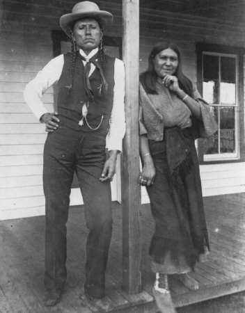 Quanah Parker mit seiner Frau Tonaca vor dem