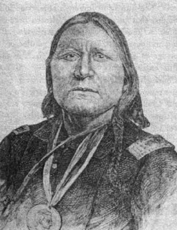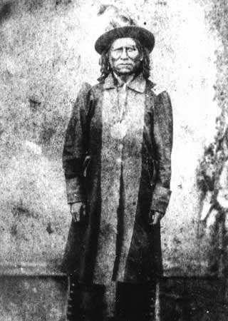 Satanta, Häuptling der Kiowa (geb. 1830; gest. 1878) Kriegerischer Häuptling der Kiowa, der das Reservationsleben grundsätzlich ablehnte.