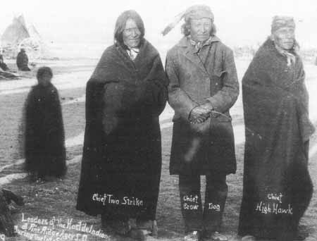 Crow Dog (mitte) und Two Strike (links)